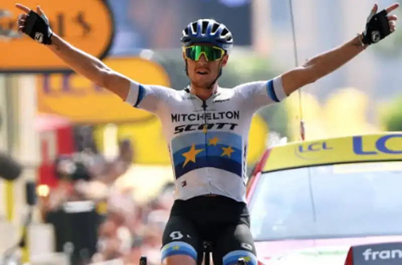 Il campione d’Europa della Mitchelton-Scott, dopo un’intera giornata in fuga, è scattato nel finale e ha fatto il vuoto sul Col de la Sentinelle, alzando le braccia al cielo al traguardo di questa frazione interlocutoria con un percorso molto nervoso e mosso alla vigilia del trittico sulle Alpi.