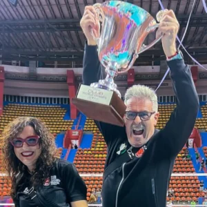 Gino Sirci in festa con la Sir Perugia campione del mondo