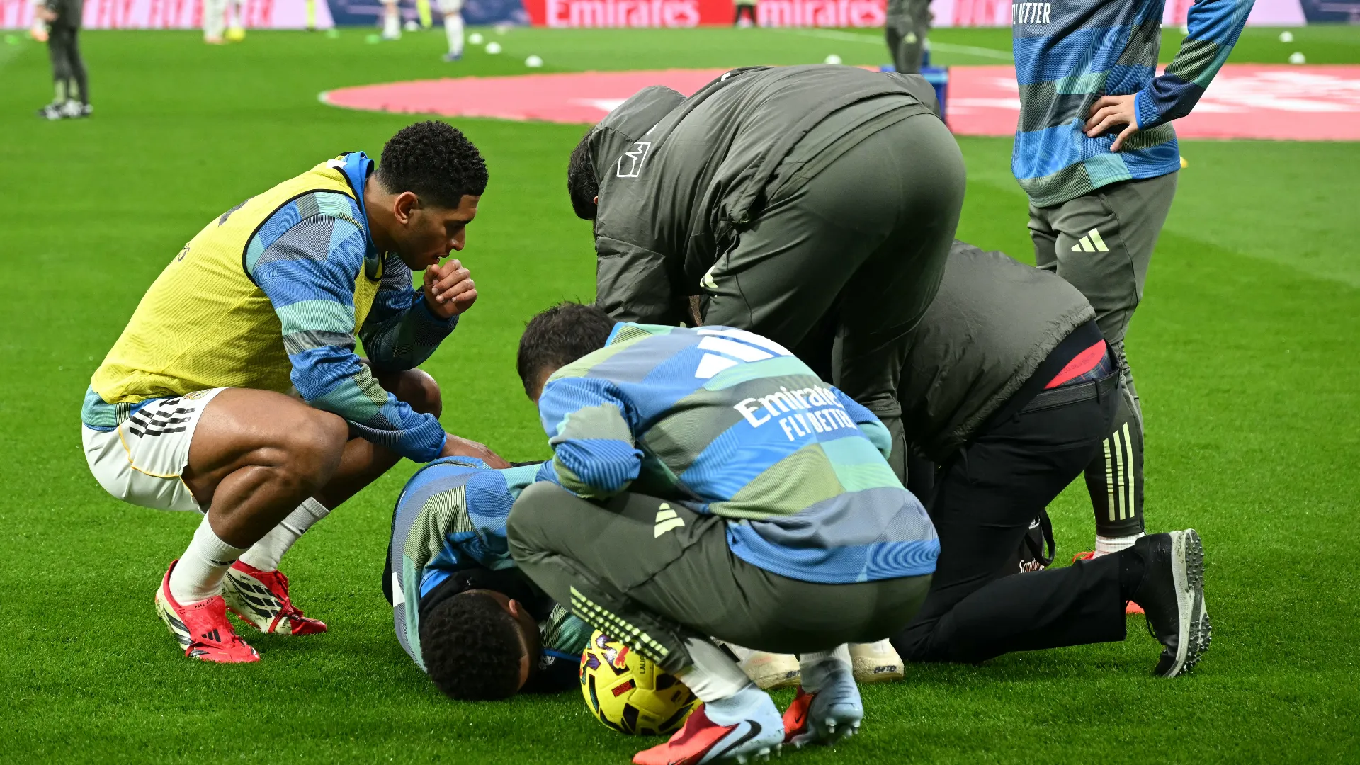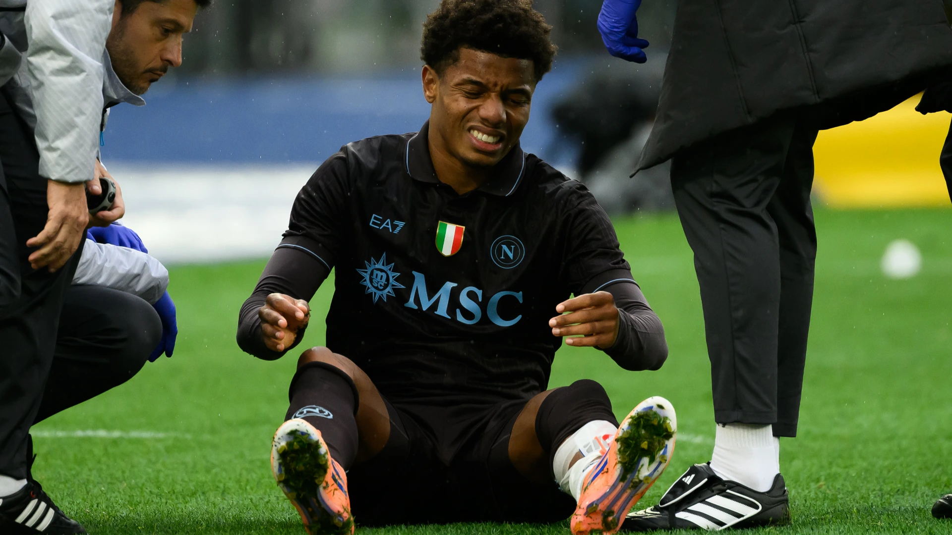 Paura per Kylian Mbappé a pochi minuti dall'inizio della partita. Foto