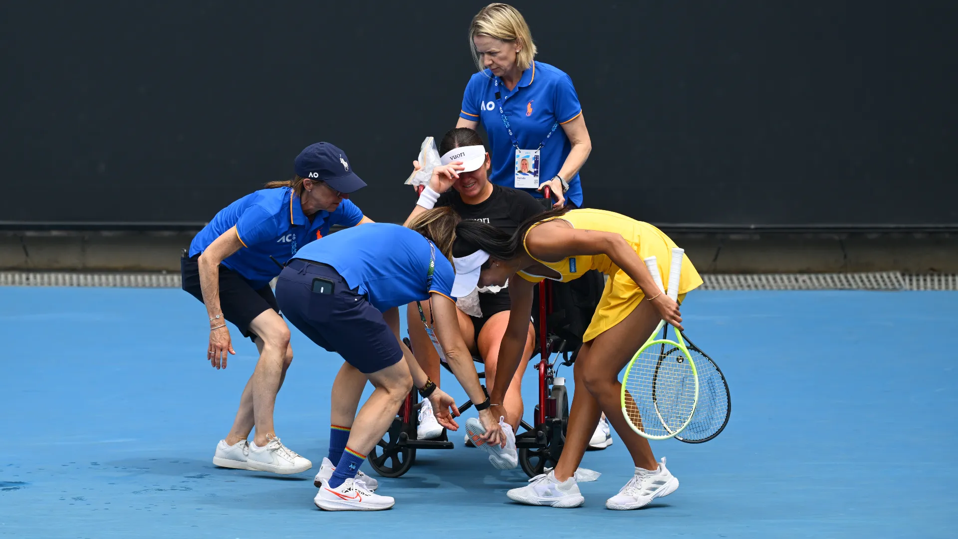 La raccattapalle collassa durante la partita, le foto del grande spavento