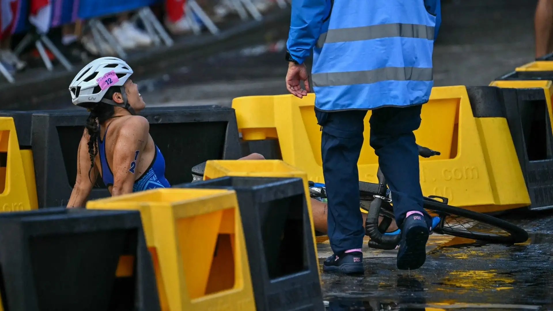 Home » Altri sport » Altre notizie Incidenti tremendi nel triathlon femminile: le foto delle cadute 1 Agosto 2024 Incidenti tremendi nel triathlon femminile: le foto delle cadute Durante la gara sono cadute diverse atlete Le strade bagnate hanno compromesso la gara rendendola molto pericolosa Tra le cadute più rovinose sicuramente quella di Manami Iijima L'atleta di Guam è scivolata sulle strisce pedonali Immediati i soccorsi: per fortuna nulla di grave La caduta è stata davvero tremenda, fortunatamente non si è fatta troppo male Manami Iijima ha poi sistemato la bicicletta e si è rimessa in sella A terra anche la colombiana María Carolina Velásquez 1 / 9 Prossima Gallery Incidenti tremendi nel triathlon femminile: le foto delle cadute © Getty Images Olimpiadi Parigi 2024 TG SPORT Articoli correlati È Pedro Sánchez la Persona dell’Anno 2025 de L’Espresso 10 giochi sportivi su PlayStation che sembrano intensi come la realtà Come Free Fire è diventato un fenomeno globale degli eSports Diletta Leotta in dolce attesa, l’annuncio fa esplodere i social Sophie Kinsella è morta, scrisse “I Love Shopping” Inaugurato il nuovo punto vendita Decathlon a Como