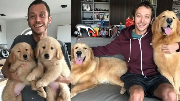 Il Dottore si è fatto immortalare con i suoi golden retriever, Penelope e Ulisse, e ha pubblicato le due foto fatte a distanza di 10 mesi. Anche la fidanzata di Rossi, Francesca Sofia Novello, ha condiviso il post su Instagram.