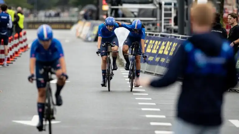 In precedenza l’Italia, sempre nella cronostaffetta mista, aveva vinto l’oro a livello juniores, con Andrea Bessega, Luca Giaimi, Andrea Montagner, Eleonora La Bella, Alice Toniolli e Federica Venturelli, che avevano percorso i 38,4 km della prova in 48’14″15.