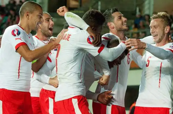 La Svizzera passa grazie al secondo posto nel Gruppo E. In foto, Inler e compagni festeggiano animatamente.