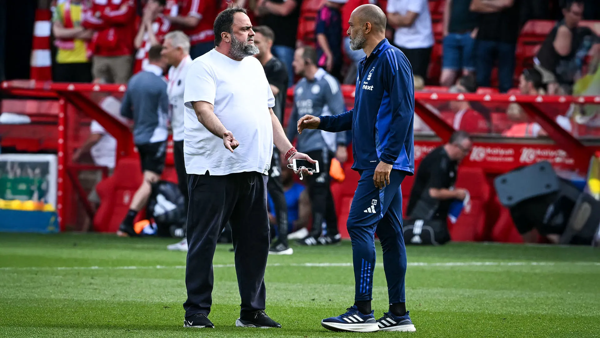 Home » Calcio Il proprietario del club entra in campo e striglia l’allenatore: scena surreale 13 Maggio 2025 Il proprietario del club entra in campo e striglia il suo allenatore Gesto decisamente poco elegante quello di Evangelos Marinakis Il proprietario del Nottingham Forest è entrato in campo al termine del match tra Leicester e Nottingham Forest Ci si aspettava una vittoria da parte della squadra di Nuno Espirito Santo che invece ha pareggiato 2-2 Evangelos Marinakis evidentemente non ha gradito il risultato ed è andato in campo a strigliare il suo allenatore Inizialmente Nuno Espirito Santo è parso piuttosto sbigottito Al termine della partita ha provato a placare le polemiche: "Il calcio è fatto di emozioni talvolta difficili da controllare" Marinakis era frustrato anche per la gestione dell'infortunio di Taiwo Awoniyi Il campione si è fatto male ma Nuno Espirito Santo ha deciso di lasciarlo in campo Il Nottingham Forest è in lotta per un piazzamento in Champions League Gli ultimi risultati negativi hanno però fatto perdere punti importanti alla squadra 1 / 11 Prossima Gallery Il proprietario del club entra in campo e striglia il suo allenatore © Getty Images Marinakis Nottingham Forest Nuno Espírito Santo Premier League TG SPORT Articoli correlati Coppa di Germania 2025-2026: Union Berlino-Bayern Monaco, le probabili formazioni Premier League 2025-2025: Arsenal-Brentford, le probabili formazioni AI e supereroi nella nuova collezione dei Calciatori Panini Bel gioco e vittorie, Fabio Lopez ha riportato l’entusiasmo in casa Fassell Sferra un calcio all’avversario: arriva la stangata per Daniel Mikolajewski Premier League 2025-2026: Newcastle-Tottenham, le probabili formazioni