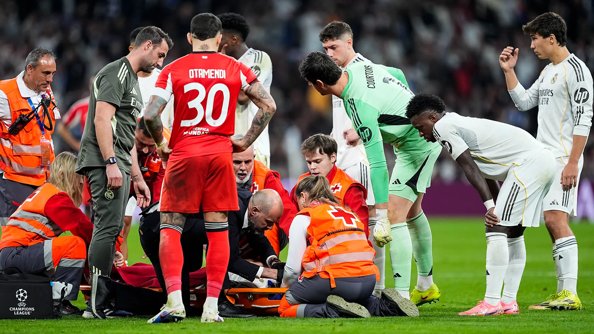 Terribile scontro, il campione del Real Madrid esce in barella. Foto
