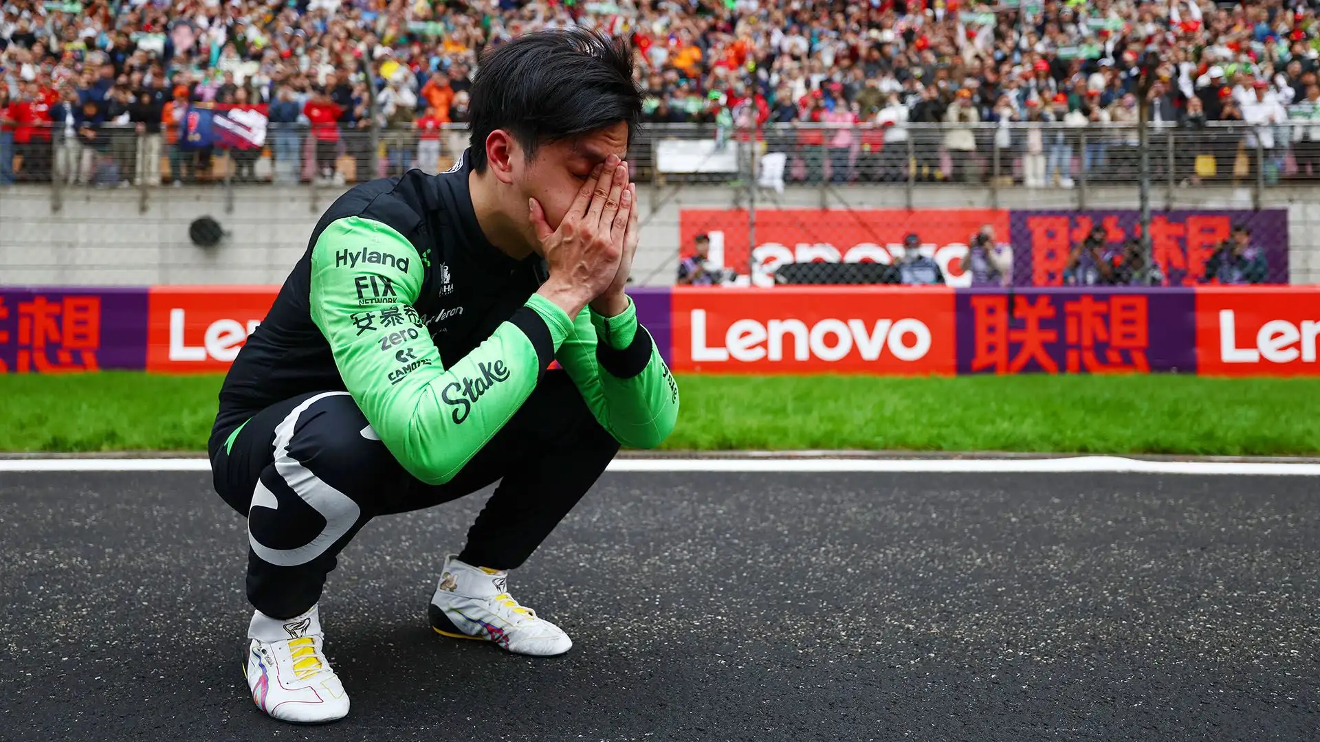 Home » Motori » Formula 1 F1, un pilota scoppia a piangere in pista: foto 22 Aprile 2024 Le immagini di Guanyu Zhou in lacrime in pista hanno fatto il giro del mondo Il pilota cinese è arrivato 14esimo nel Gran Premio di casa, a Shanghai Nonostante la gara deludente, il pilota della Kick Sauber è stato salutato calorosamente dal pubblico di casa Sulle tribune, centinaia di tifosi gli hanno dedicato un'ovazione, alzandosi in piedi ed applaudendolo Zhou è sceso dalla sua monoposto fermando il giro di rientro, e non ha nascosto la sua commozione In lacrime si è accovacciato in pista, ringraziando i tifosi per l'affetto "Vedere la passione e l’amore da tutti i tifosi sugli spalti, è qualcosa che non avevo mai provato in vita mia" "Il giro di rientro, in particolare, non lo dimenticherò mai, tutti festeggiavano e urlavano il mio nome" "E' un onore essere il primo pilota cinese a correre in un Gran Premio della Cina" 1 / 9 Prossima Gallery Le immagini di Guanyu Zhou in lacrime in pista hanno fatto il giro del mondo © Getty Images Guanyu Zhou TG MOTORI Articoli correlati Lewis Hamilton sparisce, la Ferrari si consola con Alba Larsen F1, rivalità nei team: superiorità totale di Fernando Alonso Ferrari beffata, flop a Maranello ha vinto in Red Bull: “Ma volevo restare” Ferrari, l’assordante silenzio di Lewis Hamilton fa discutere Maurizio Arrivabene torna a pungere la Ferrari per Lewis Hamilton Carlo Vanzini rompe il silenzio con un nuovo toccante messaggio